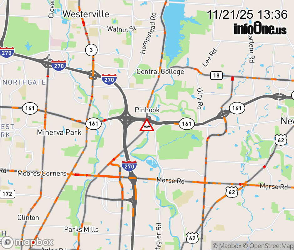 Expect lane closures on Ramp from I-270 N to Sunbury Rd, due to a crash. ![]() |