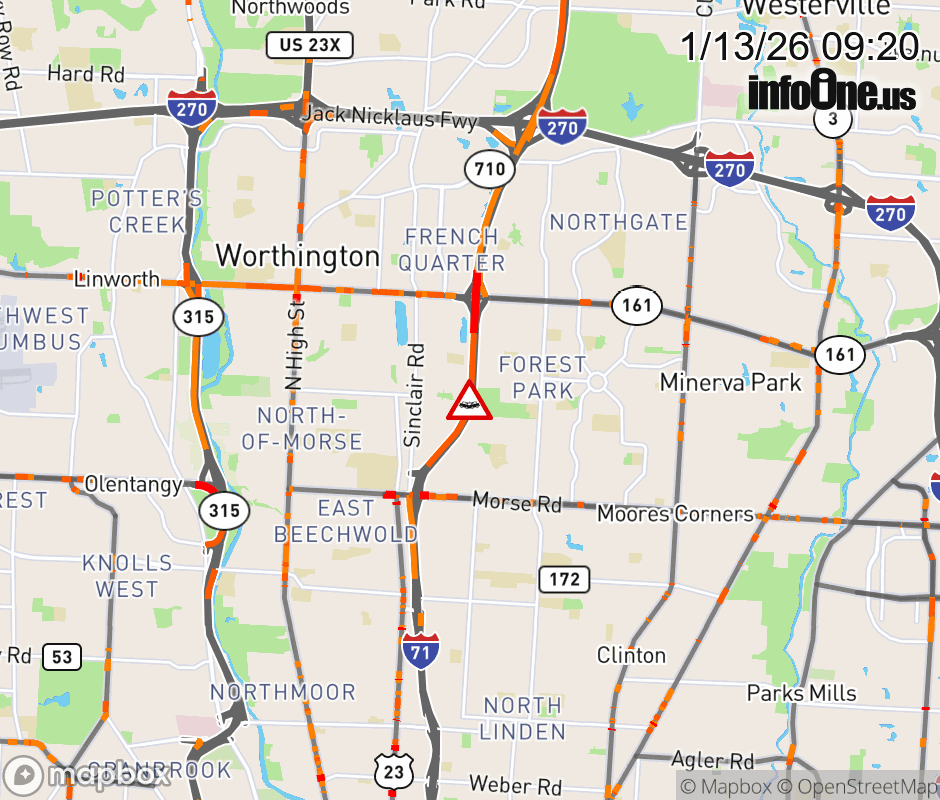 The left shoulder is blocked on I-71 South beyond SR-161/Dublin Granville Rd, due to a crash. Updated: Tue 1/13/26 9:20 AM EST ![]() Updated: Tue 1/13/26 9:20 AM EST |