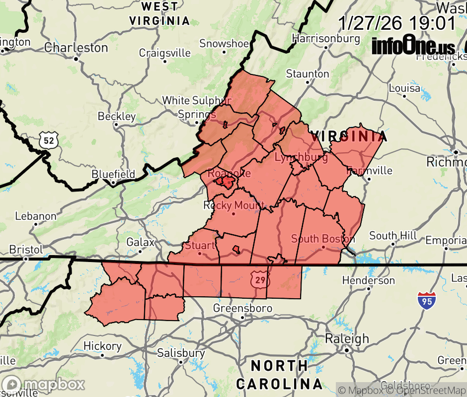 Canceled 1/28/26 10:00 AM Special Weather Statement issued January 27 at 7:00PM EST by NWS Blacksburg VA Where temperatures rose above freezing today or became slushy under direct sunlight, any snow or ice that managed to melt will refreeze tonight as temperatures drop into the single digits to teens. Those traveling tonight through Wednesday morning should be on the lookout for areas of ice. Remember to use caution while driving, slow down, and leave plenty of space between vehicles. ![]() |