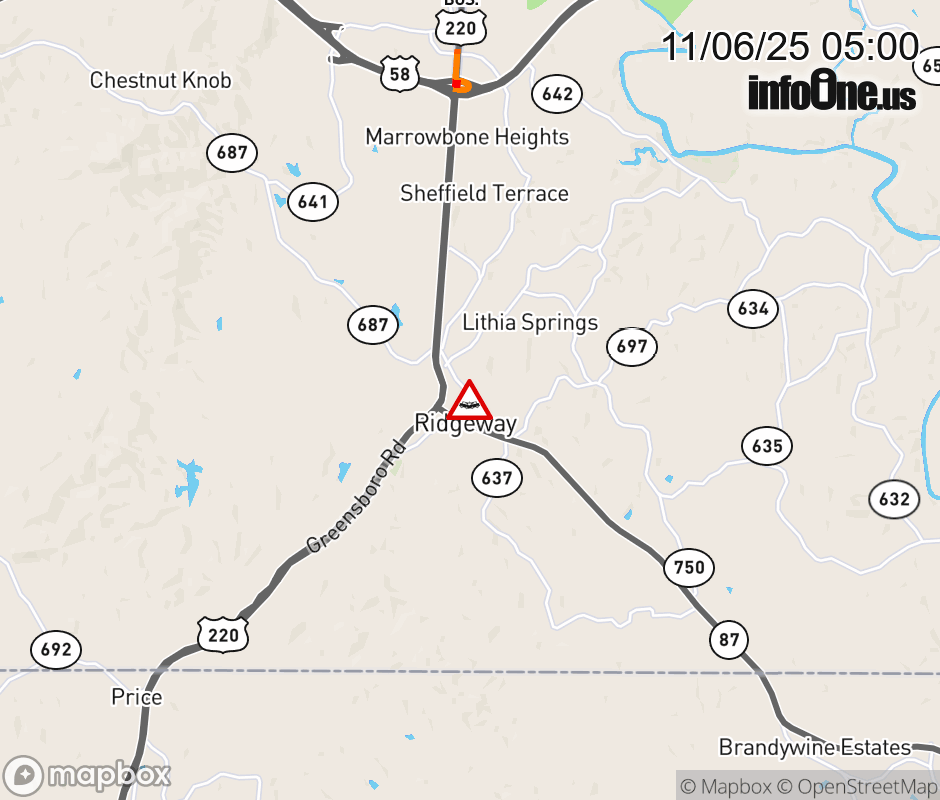 On BUS US-220 North in the County of Henry, in the vicinity of Antioch Church St; Rt. 783E/W (Henry County), motorists can expect delays due to a vehicle crash. Lane closures exist. ![]() |