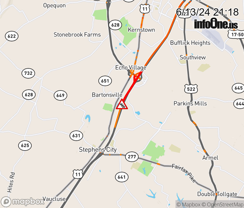On I-81 South at mile marker 309 in the County of Frederick, motorists can expect delays due to congestion. Traffic backups are approximately 1.5 miles.. Updated: Thu 6/13/24 9:18 PM EDT ![]() Updated: Thu 6/13/24 9:18 PM EDT |