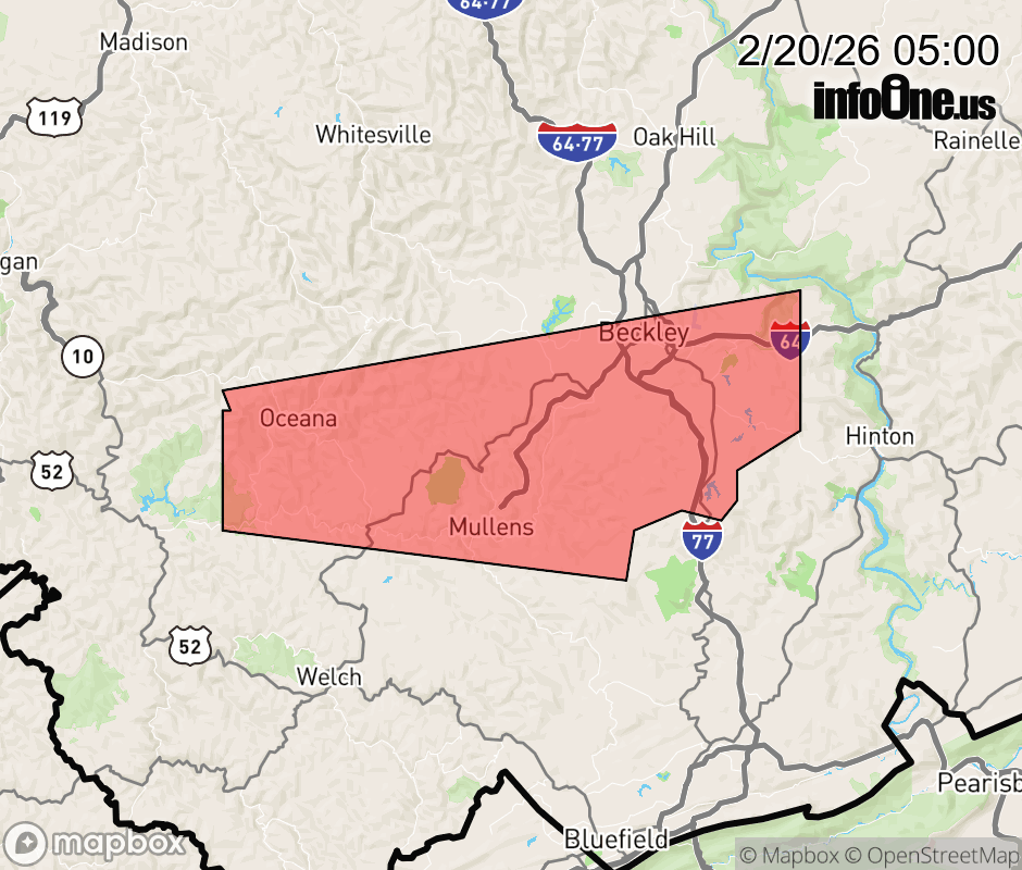 Canceled 2/20/26 5:16 AM Severe Thunderstorm Warning issued February 20 at 4:58AM EST until February 20 at 5:30AM EST by NWS Charleston WV SVRRLX The National Weather Service in Charleston West Virginia has issued a * Severe Thunderstorm Warning for... Central Raleigh County in southeastern West Virginia... Central Wyoming County in southern West Virginia... * Until 530 AM EST. * At 458 AM EST, a severe thunderstorm was located near Oceana, or near Pineville, moving east at 55 mph. HAZARD...60 mph wind gusts and penny size hail. SOURCE...Radar indicated. IMPACT...Expect damage to roofs, siding, and trees. * Locations impacted include... Beckley, Pineville, Mullens, Mabscott, Oceana, Sophia, Crab Orchard, Dry Creek, Macarthur, Coal City, Shady Spring, Twin Falls State Park, Beaver, Daniels, Lester, Rhodell, Clear Fork, Bolt, Ghent, and Josephine. This includes the following highways... West Virginia Turnpike between mile markers 28 and 44. Interstate 64 in West Virginia between mile markers 120 and 132. ![]() |