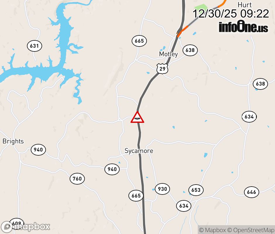 On US-29 South in the County of Pittsylvania, in the vicinity of Dewberry Rd; Rt. 756E/W (Pittsylvania County), motorists can expect delays due to a vehicle crash. Lane closures exist. ![]() |