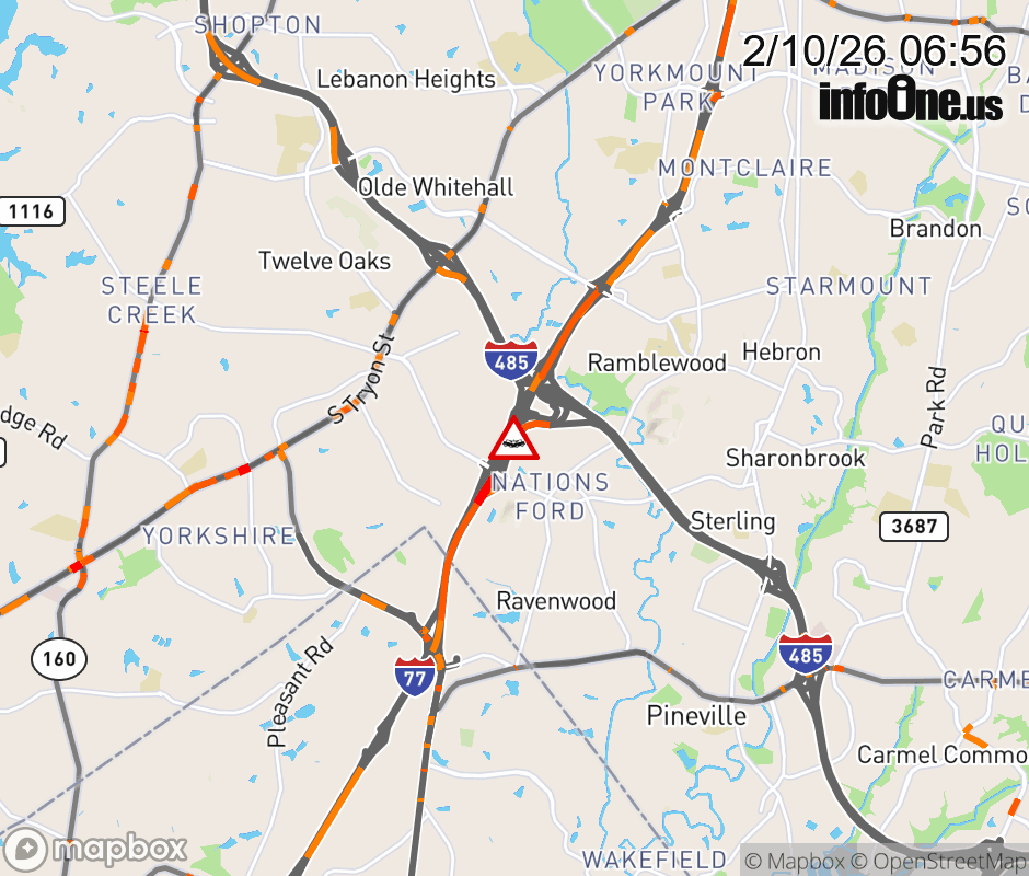 The left ramp lane is closed at Exit 1 (I-485). ![]() |