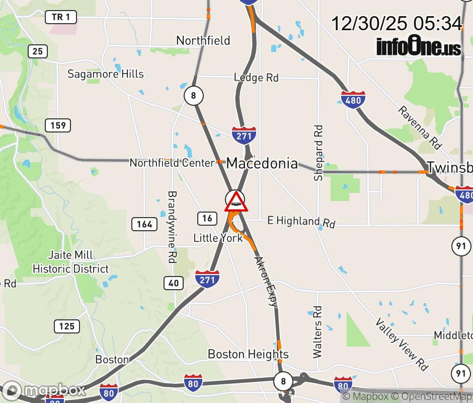 The right lane is blocked on Ramp SR-8 North to I-271 North, due to a crash. ![]() |