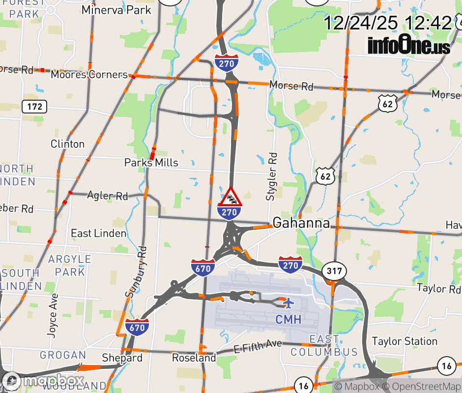 The left lane is blocked on I-270 North beyond US-62 East/Johnstown Rd, due to debris on roadway. ![]() |