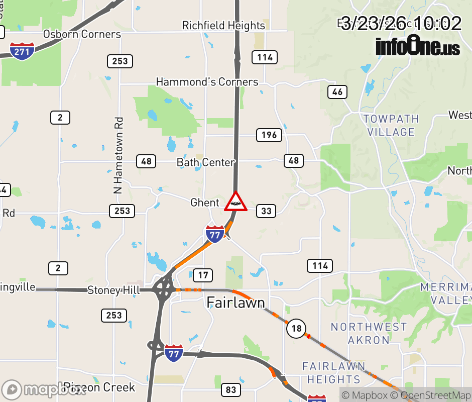 The right lane is blocked on I-77 North beyond Ghent Rd, due to a crash. ![]() |