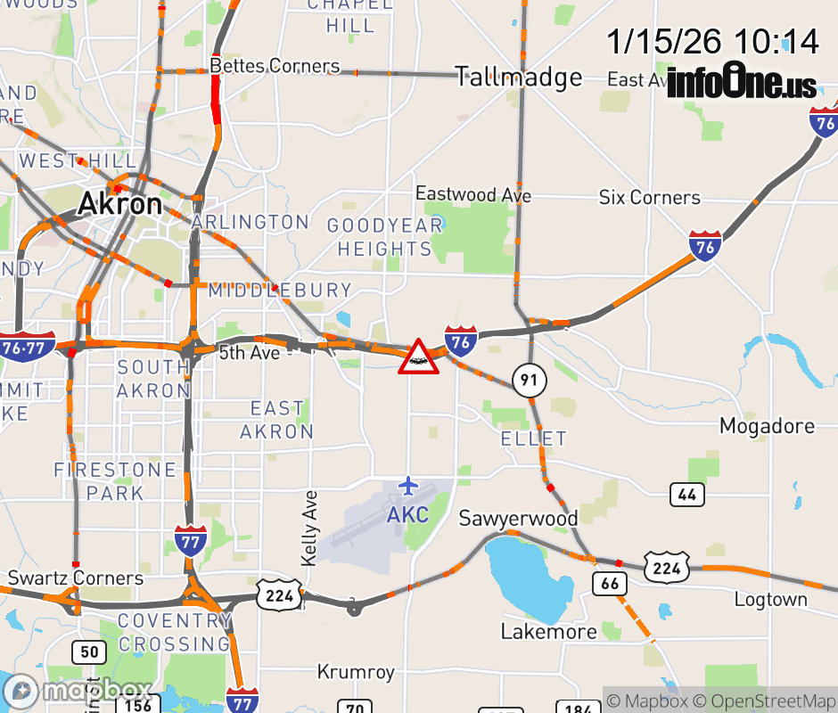 The left lane is blocked on I-76 West beyond SR-18/E Market St, due to a crash.