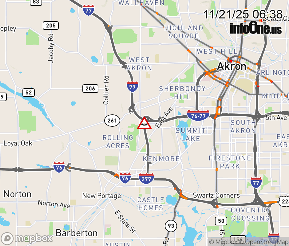 The left lane is blocked on I-76 East at I-77 North, due to a crash. Updated: Fri 11/21/25 6:38 AM EST ![]() |
