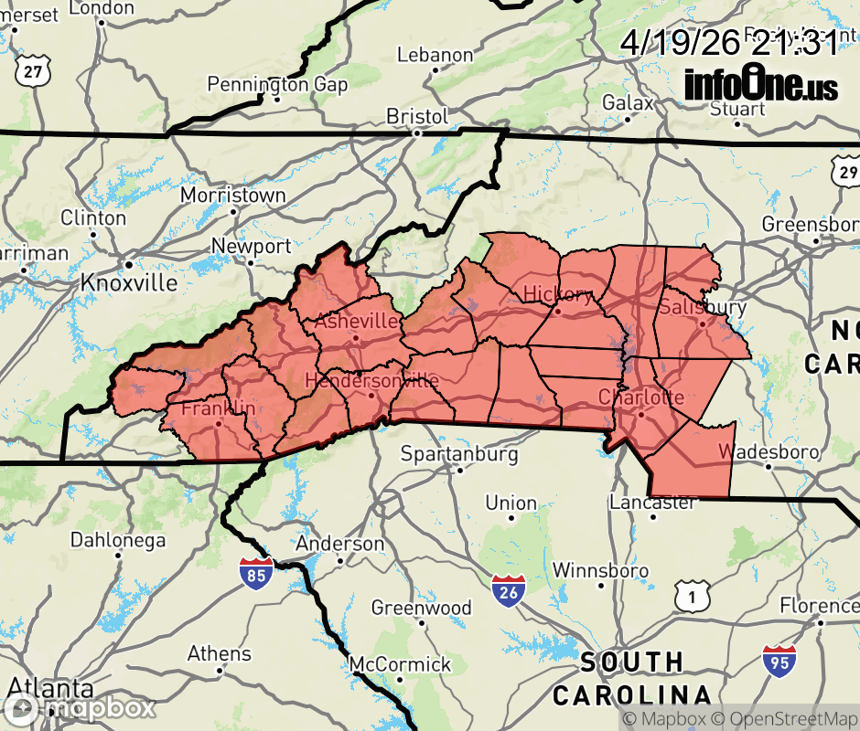 Canceled 4/20/26 6:00 AM Special Weather Statement issued April 19 at 9:30PM EDT by NWS Greenville-Spartanburg SC Brush and leaf litter are very dry in all but the northern mountains of North Carolina, where fuel moisture values are higher due to recent rainfall. Relative humidity will fall to around 30 percent in the mountains and below 25 percent in the foothills and Piedmont Monday afternoon. Winds will gust to 30 mph across the mountains and 25 mph across the foothills and Piedmont. Given the dry vegetation, outdoor fires will be able to spread quickly once started, increasing the danger of wildfires. A Red Flag Warning could be needed if relative humidity drops lower across the mountains or stronger wind gusts develop across the foothills and Piedmont. A statewide burn ban is in effect for North Carolina. ![]() |