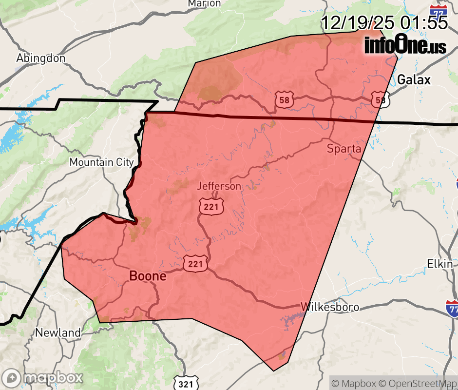 Canceled 12/19/25 2:30 AM Special Weather Statement issued December 19 at 1:54AM EST by NWS Blacksburg VA At 153 AM EST, Doppler radar was tracking gusty showers along a line extending from near Troutdale to near Blowing Rock In Caldwell County. Movement was east at 45 mph. HAZARD...Wind gusts up to 40 mph. SOURCE...Radar indicated. IMPACT...Gusty winds could knock down tree limbs and blow around unsecured objects. Locations impacted include... Boone... Sparta... Jefferson... West Jefferson... Blowing Rock... Independence... and Fries. ![]() |