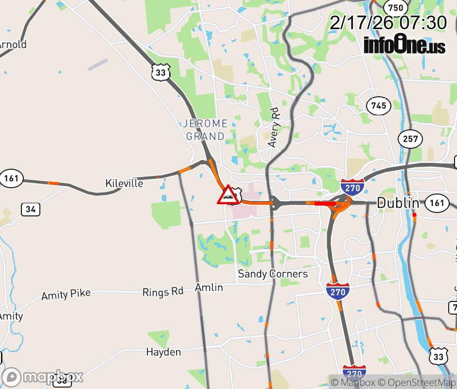 The left lane is blocked on US-33/SR-161 East beyond Post Rd, due to a disabled vehicle. ![]() |