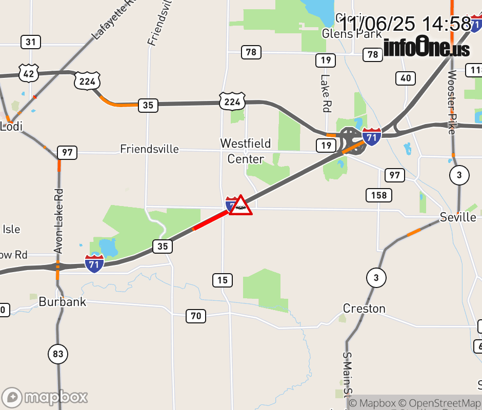 All lanes are blocked on I-71 North beyond SR-83, due to a crash. Updated: Thu 11/6/25 2:58 PM EST ![]() |
