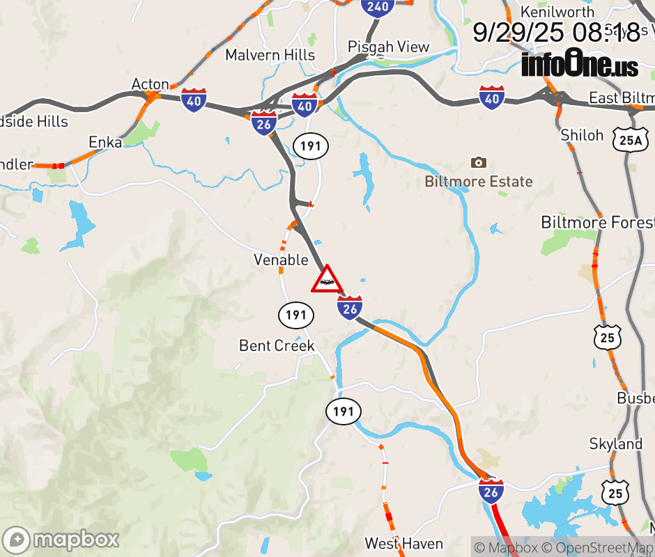 The right shoulder is closed three miles east of Exit 33, NC 191 (Brevard Road). ![]() |