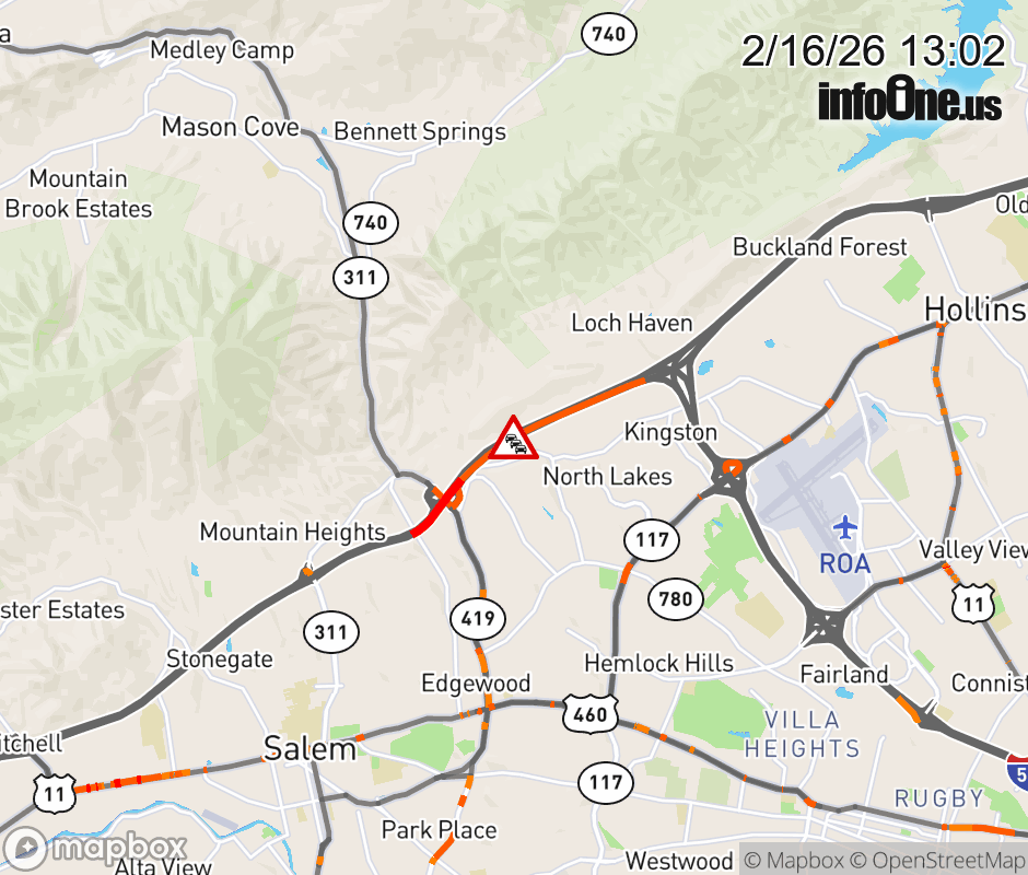 On I-81 at mile marker 142.3 in the County of Roanoke, motorists can expect delays due to a vehicle fire. The north right shoulder is closed. Updated: Mon 2/16/26 1:02 PM EST ![]() Updated: Mon 2/16/26 1:02 PM EST |