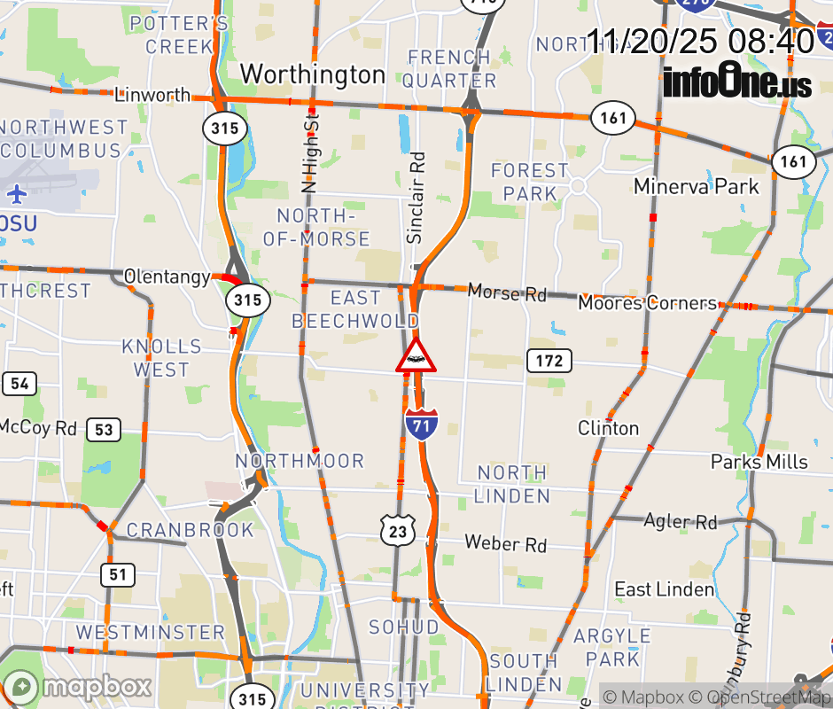 The left shoulder is blocked on I-71 South at E Cooke Rd, due to a crash. Updated: Thu 11/20/25 8:40 AM EST ![]() |