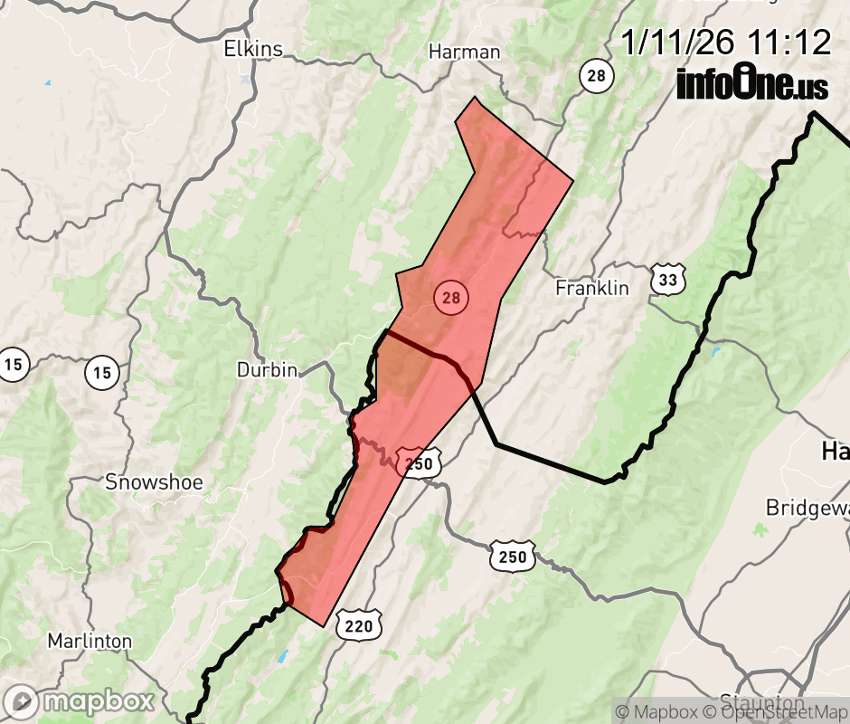 Canceled 1/11/26 12:00 PM Special Weather Statement issued January 11 at 11:11AM EST by NWS Baltimore MD/Washington DC At 1109 AM EST, heavy snow showers were located along a line extending from 13 miles east of Elkins to 6 miles north of Marlinton. Movement was southeast at 25 mph. Winds in excess of 30 mph are possible and visibilities will drop quickly to less than a quarter of a mile. Locations impacted include... Circleville, Hightown, Blue Grass, Cherry Grove, Mill Gap, Riverton, and New Hampden. Use extra caution if you must travel. Rapid changes in visibility and potentially slick roads will lead to hazardous driving conditions. ![]() |