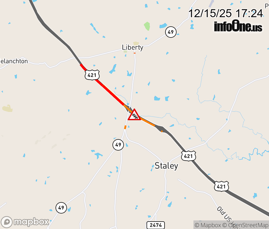 There is congestion reported near Exit 181 (NC 49). ![]() |