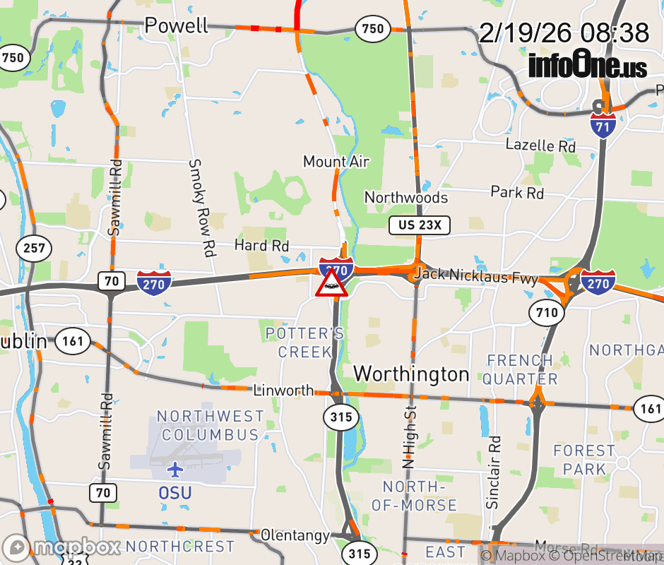 Ramp I-270 East to SR-315 South CLOSED because of a crash. Updated: Thu 2/19/26 8:38 AM EST ![]() Updated: Thu 2/19/26 8:38 AM EST |