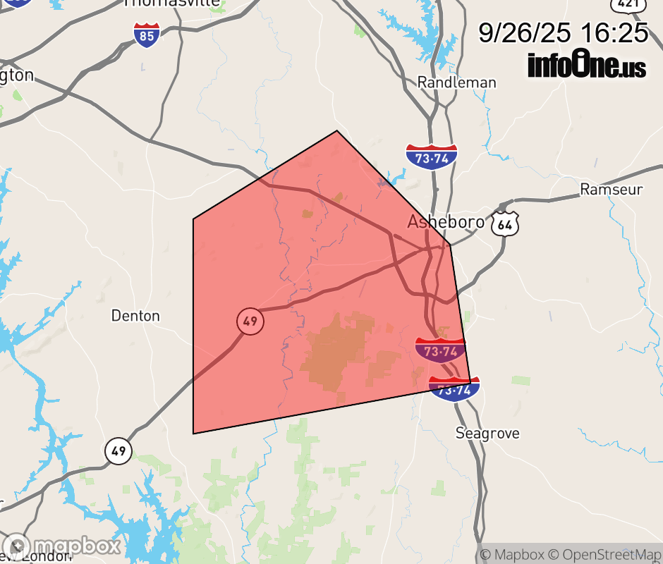 Canceled 9/26/25 4:44 PM Severe Thunderstorm Warning issued September 26 at 4:23PM EDT until September 26 at 5:00PM EDT by NWS Raleigh NC At 423 PM EDT, a severe thunderstorm was located 13 miles southwest of Asheboro, moving east at 10 mph. HAZARD...60 mph wind gusts and quarter size hail. SOURCE...Radar indicated. IMPACT...Hail damage to vehicles is expected. Expect wind damage to roofs, siding, and trees. Locations impacted include... Asheboro, Ulah, and Martha. ![]() |