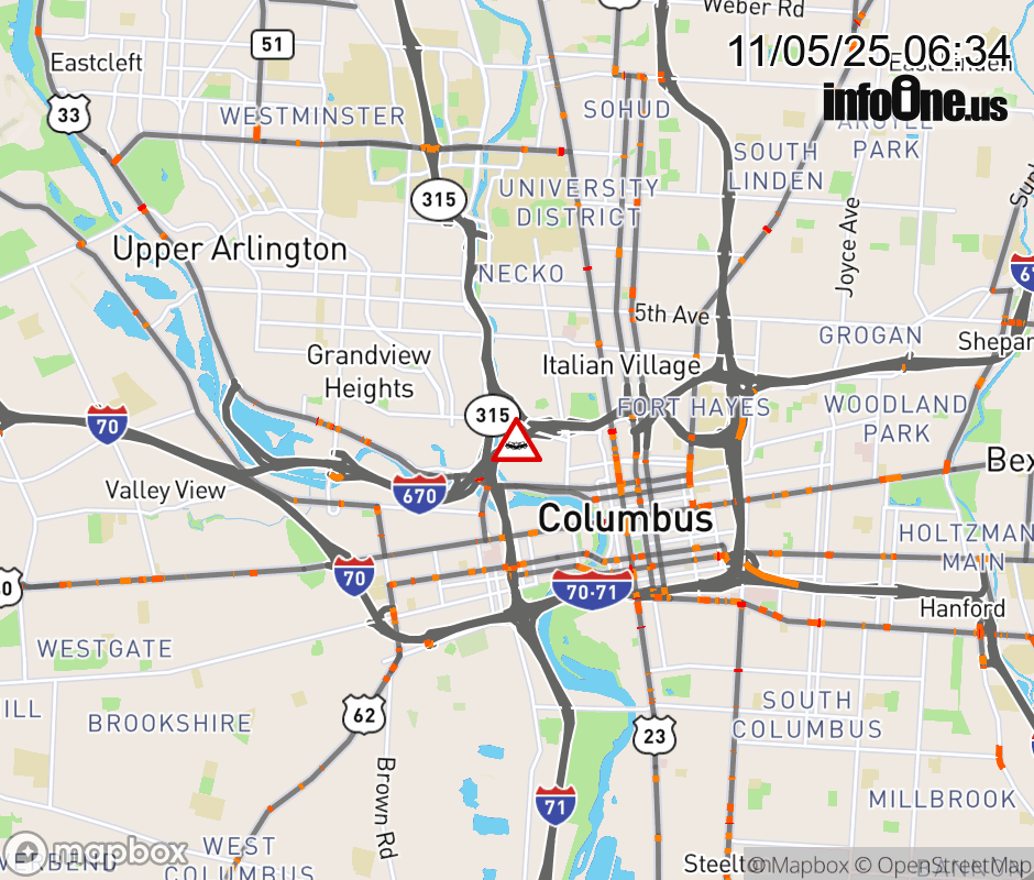 The right lane is blocked on I-670 West at SR-315 South, due to a crash. ![]() |