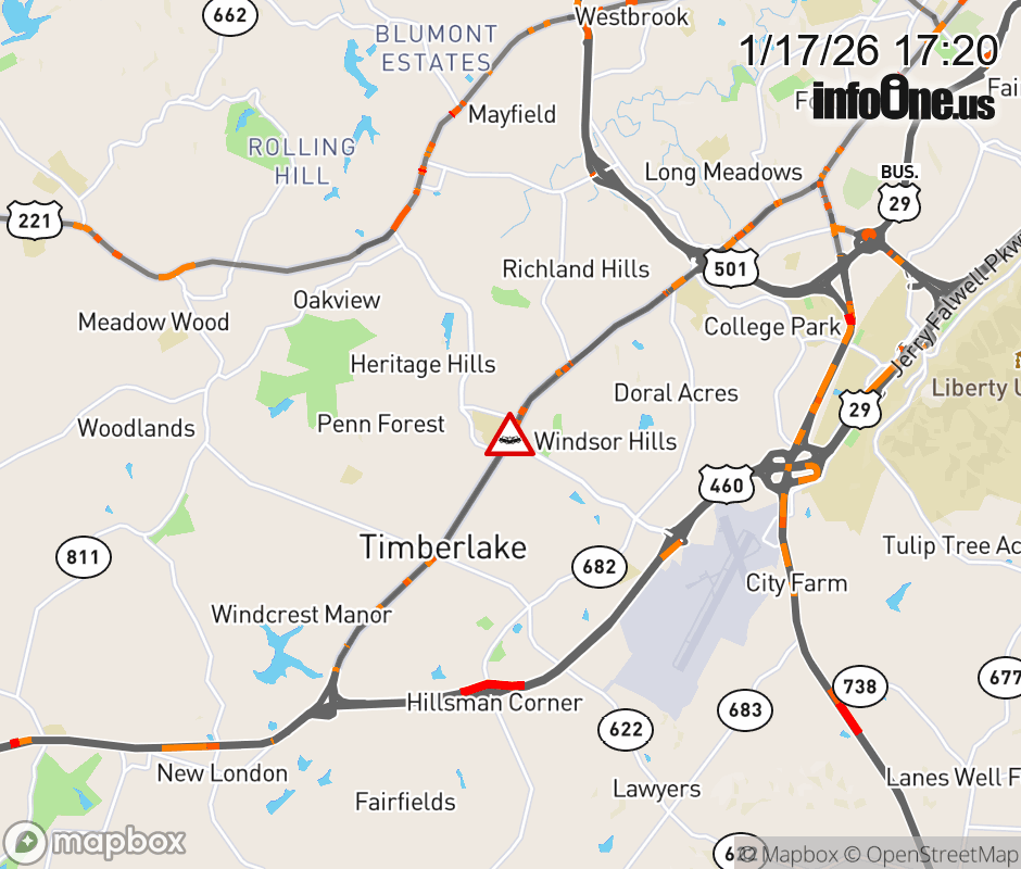On BUS US-460 West in the County of Campbell, in the vicinity of Rt. 9898N/S (Campbell County), motorists can expect delays due to a vehicle crash. Lane closures exist. ![]() |