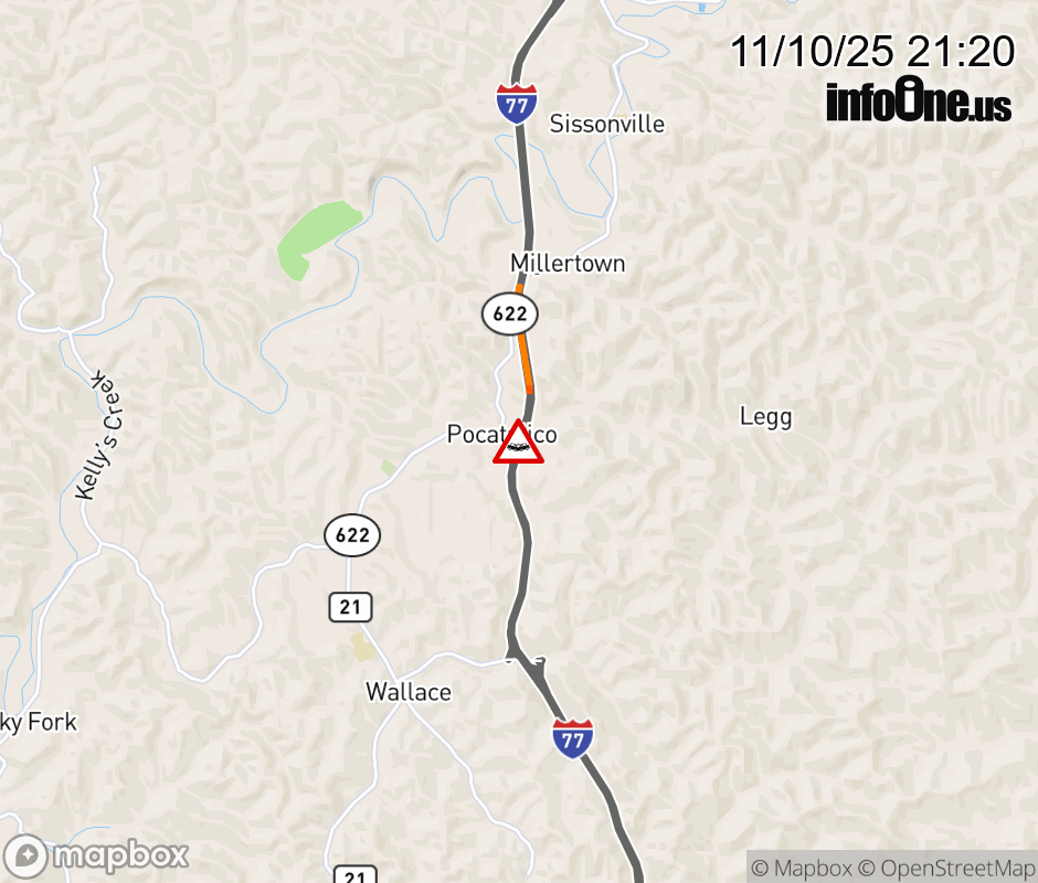 Canceled 11/10/25 11:44 PM Location: I-77 at MM 112.0, WV Accident.