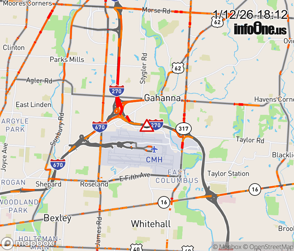 Expect lane closures on I-270 South beyond US-62 East, due to a crash. ![]() |