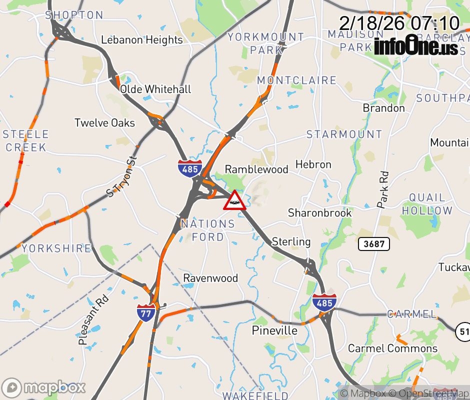The two right lanes are closed near Exit 67 (I-77) Updated: Wed 2/18/26 7:10 AM EST ![]() Updated: Wed 2/18/26 7:10 AM EST |