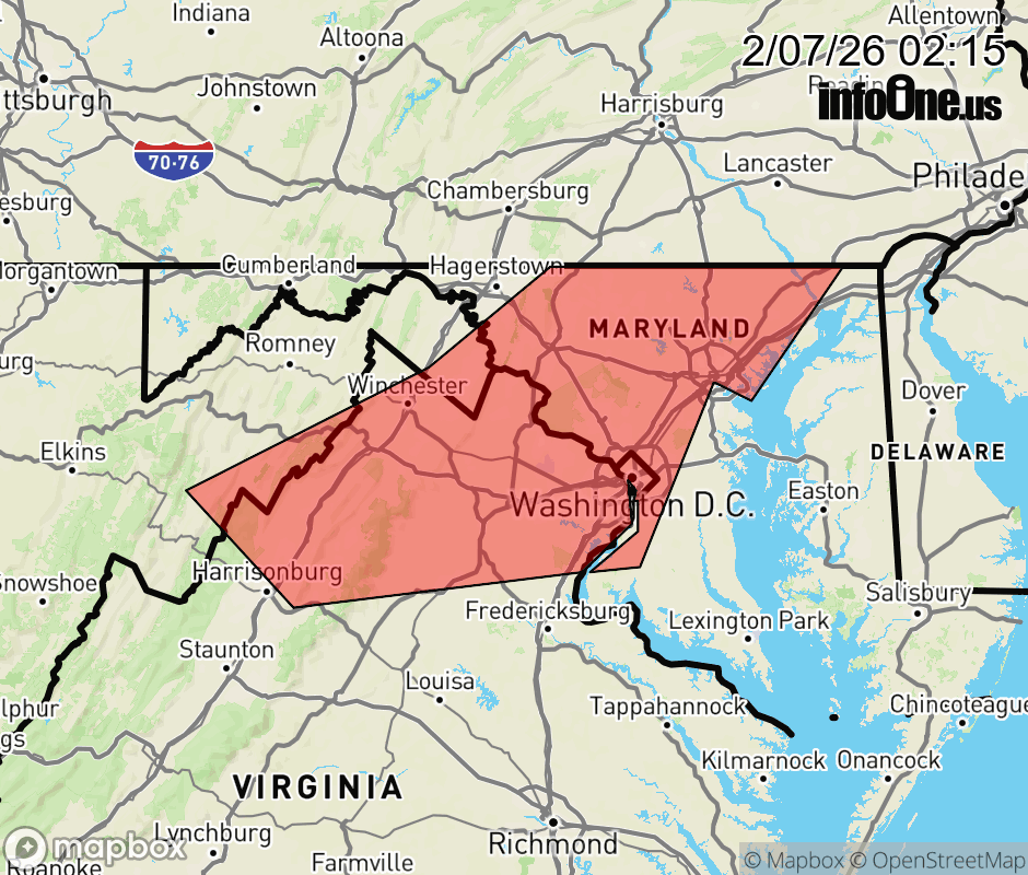 Canceled 2/7/26 3:00 AM Special Weather Statement issued February 7 at 2:14AM EST by NWS Baltimore MD/Washington DC At 211 AM EST, snow showers were located along a line extending from near Railroad to near Haymarket to 7 miles northeast of Brandywine. Movement was southeast at 45 mph. Winds in excess of 30 mph are possible with these snow showers along with a quick coating to locally half inch or snow. Locations impacted include... Baltimore, Arlington, Alexandria, Columbia, Germantown, Centreville, Waldorf, Dale City, Frederick, Rockville, Bethesda, Gaithersburg, Reston, Bowie, Severn, Leesburg, Annandale, Clinton, Olney, and Pikesville. This includes the following highways... Route 1 in Maryland between mile markers 8 and 4. Interstate 70 in Maryland between mile markers 35 and 93. Interstate 95 in Maryland between mile markers 2 and 52, and between mile markers 54 and 90. Interstate 270 in Maryland between mile markers 1 and 32. Use extra caution if you must travel into or through these dangerous snow showers. Rapid changes in visibility and potentially slick roads are likely to lead to accidents. Consider delaying travel until the squall passes your location. Conditions can deteriorate rapidly in winter weather situations. Be prepared for snow or ice covered roads. Slow down and allow extra time when traveling. ![]() |