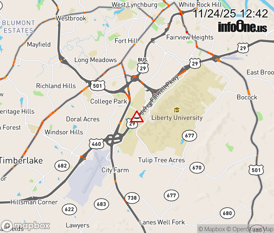 On US-460 in the City of Lynchburg, in the vicinity of Ramp Intersection:FROM UNIVERSITY BLVD, motorists can expect delays due to a vehicle crash. The west right lane and right shoulder are closed. ![]() |