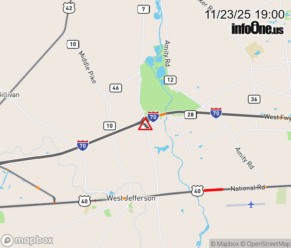Ramp to I-70 from SR-142 West closed because of repairs/maintenance. Use alternate route. Updated: Sun 11/23/25 7:00 PM EST ![]() Updated: Sun 11/23/25 7:00 PM EST |