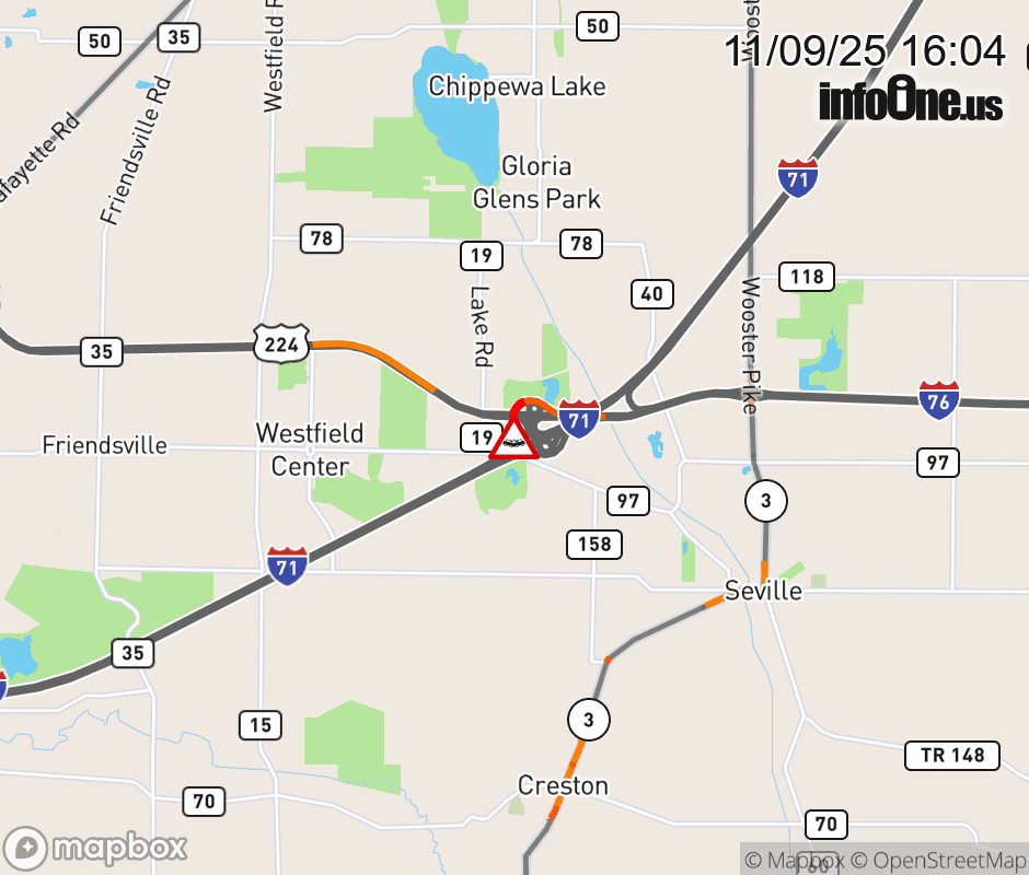 All lanes are blocked on Ramp I-76/US-224 West to I-71 South, due to a crash. ![]() |