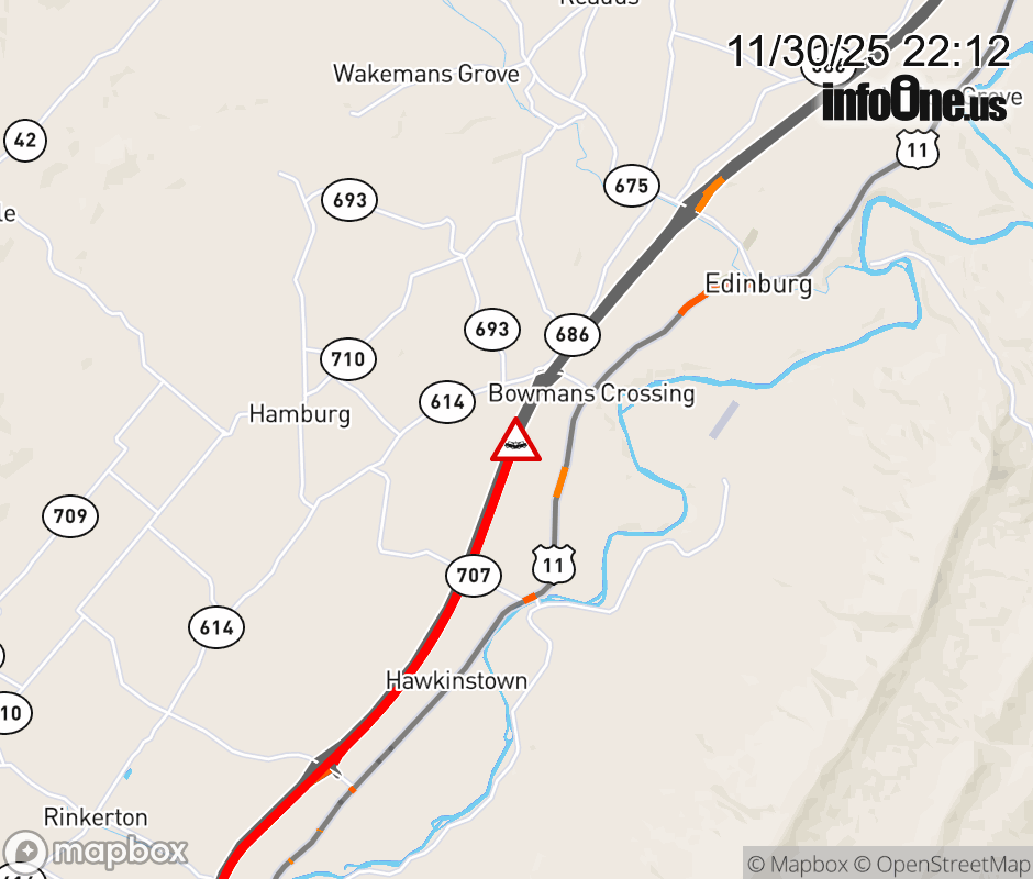 On I-81 North at mile marker 276.8 in the County of Shenandoah, motorists can expect delays due to a vehicle crash. Traffic backups are approximately 3.5 miles. Updated: Sun 11/30/25 10:12 PM EST ![]() Updated: Sun 11/30/25 10:12 PM EST |