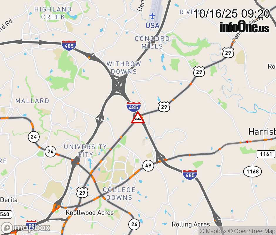 The left lane is closed at I-485 Inner. ![]() Updated: Thu 10/16/25 9:20 AM EDT |