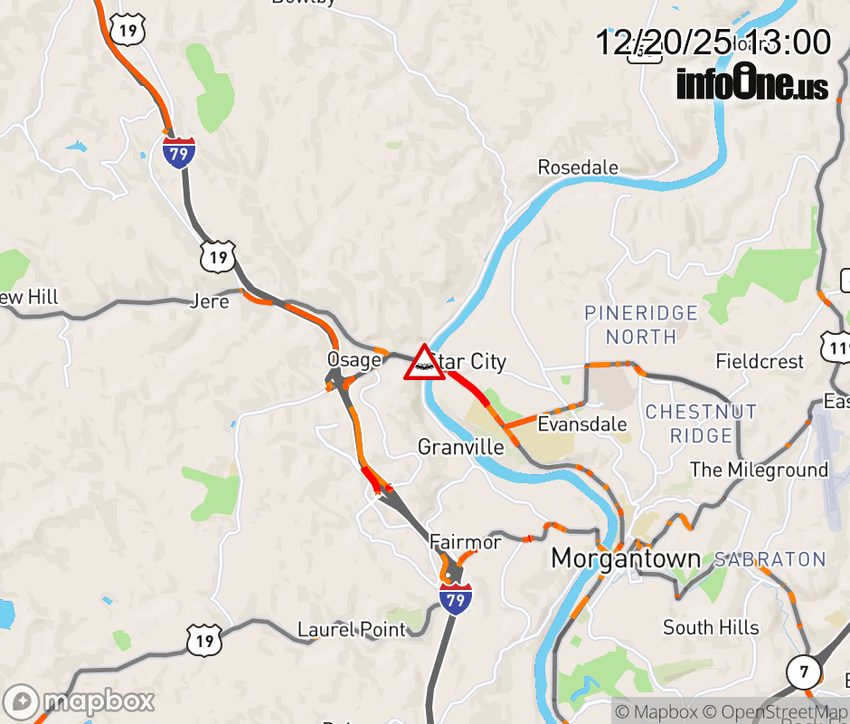 Vehicle Crash on US-19 NB at Star City Bridge. The northbound left lane is closed. ![]() |
