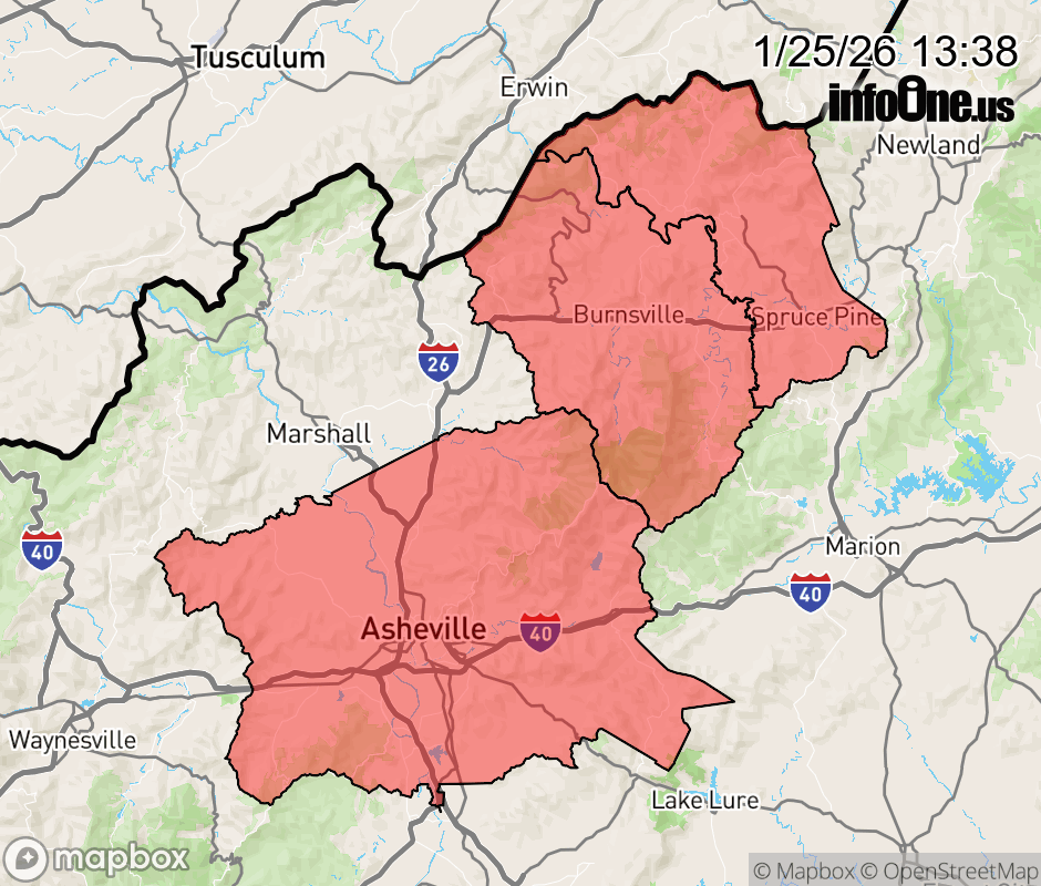 Canceled 1/25/26 9:18 PM Ice Storm Warning issued January 25 at 1:37PM EST until January 26 at 1:00PM EST by NWS Greenville-Spartanburg SC * WHAT... Damaging icing expected. Additional light sleet accumulations and ice accumulations around one quarter of an inch. Winds gusting as high as 55 mph. * WHERE... A portion of the mountains of western North Carolina including Mitchell, Yancey, and Buncombe Counties. * WHEN... Until 1 PM EST Monday. * IMPACTS... Significant ice accumulation on power lines and tree limbs may cause widespread and long-lasting power outages. Snow and ice accumulations will make many roads treacherous and impassable. The weight of the snow and ice on tree limbs and power lines could produce isolated outages. The hazardous conditions could impact the Monday morning commute. Strong winds could cause extensive damage to trees and power lines. * ADDITIONAL DETAILS... Precipitation rates are expected to increase again this afternoon bringing additional impacts. Treacherous road conditions and power outages will remain Sunday night and likely linger through at least Monday. ![]() |