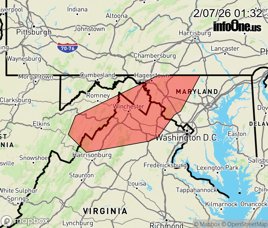 Canceled 2/7/26 2:30 AM Special Weather Statement issued February 7 at 1:30AM EST by NWS Baltimore MD/Washington DC At 128 AM EST, snow showers were located along a line extending from near Wolfsville to near Moorefield. Movement was southeast at 30 mph. Winds in excess of 30 mph are possible with these snow showers along with a quick coating to locally half inch or snow. Locations impacted include... Germantown, Frederick, Gaithersburg, Leesburg, Hagerstown, Winchester, South Riding, Westminster, Martinsburg, Damascus, Front Royal, Broadlands, Lansdowne, Lowes Island, Brambleton, Warrenton, Strasburg, Thurmont, Charles Town, and Woodstock. This includes the following highways... Interstate 70 in Maryland between mile markers 24 and 74. Interstate 81 in Maryland between mile markers 1 and 8. Interstate 270 in Maryland between mile markers 13 and 32. Use extra caution if you must travel into or through these snow showers. Rapid changes in visibility and potentially slick roads are likely to lead to accidents. Consider delaying travel until the snow showers pass your location. Conditions can deteriorate rapidly in winter weather situations. Be prepared for snow or ice covered roads. Slow down and allow extra time when traveling. ![]() |