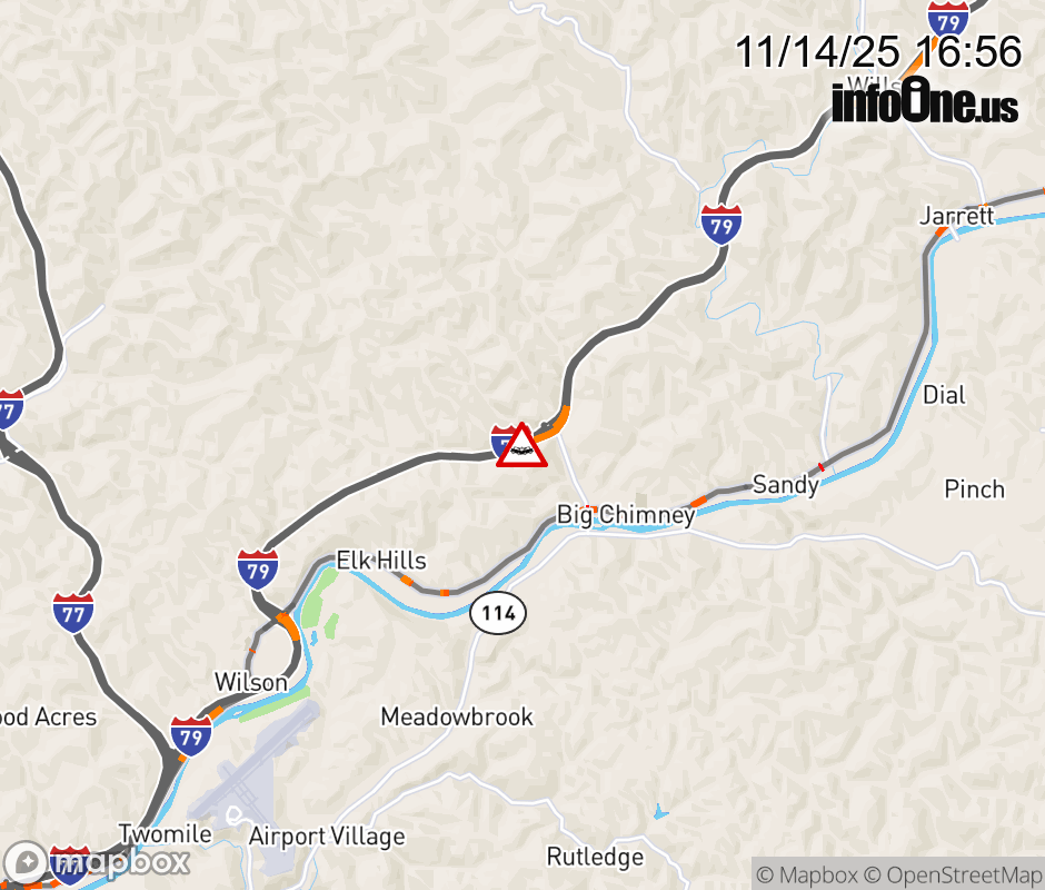 Vehicle Crash on I-79N at Mile Marker 5.0. Comments:Big Chimney Exit. ![]() |
