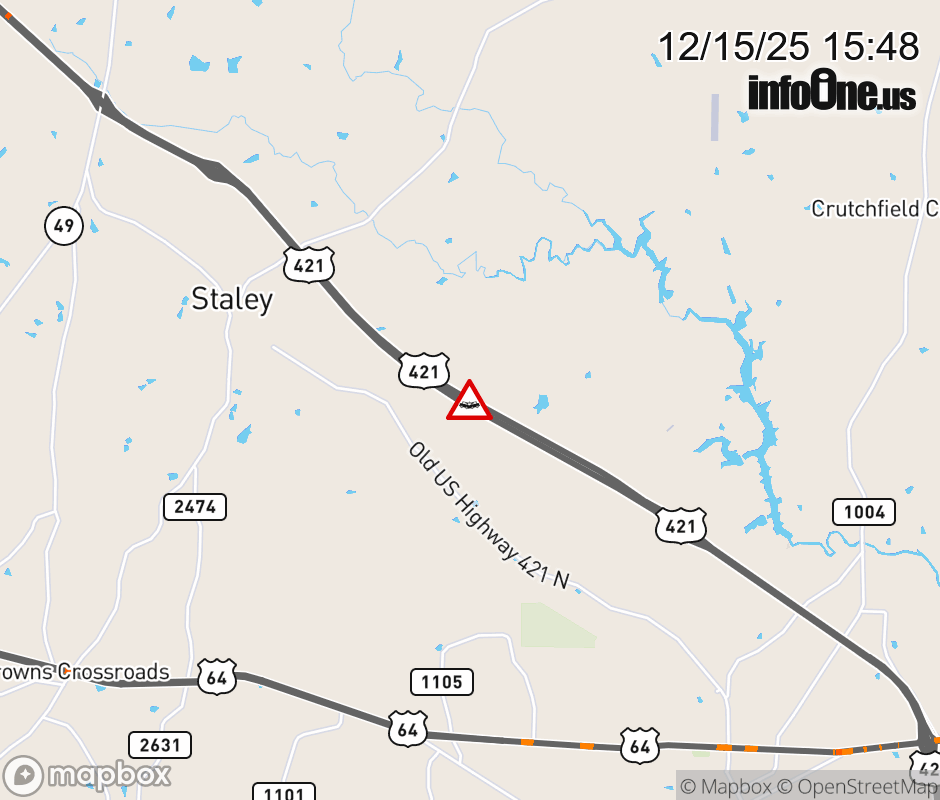 Canceled 12/15/25 3:58 PM Location: US-421N at MM 176, NC Vehicle Crash.