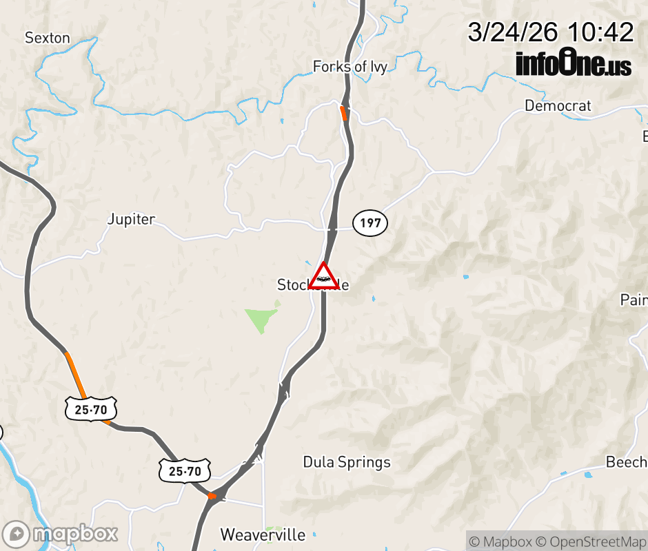 One lane is closed near Exit 15, NC 197 (Barnardsville Highway). Updated: Tue 3/24/26 10:42 AM EDT ![]() Updated: Tue 3/24/26 10:42 AM EDT |