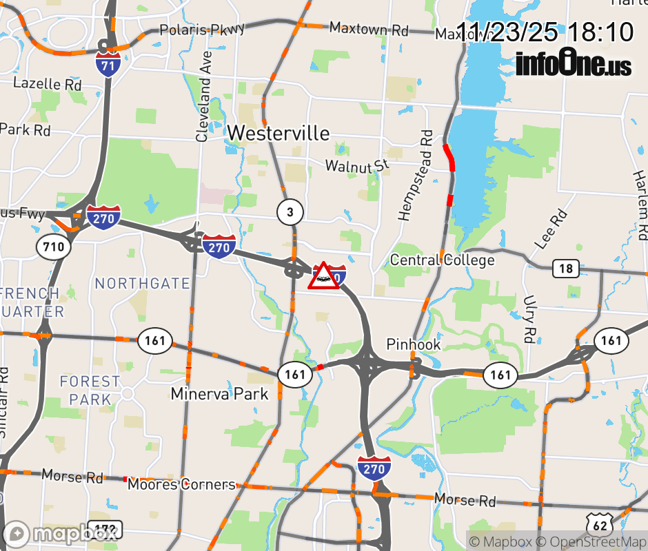 The right shoulder is blocked on I-270 North at SR-3/Westerville Pike, due to a crash. Updated: Sun 11/23/25 6:10 PM EST ![]() Updated: Sun 11/23/25 6:10 PM EST |
