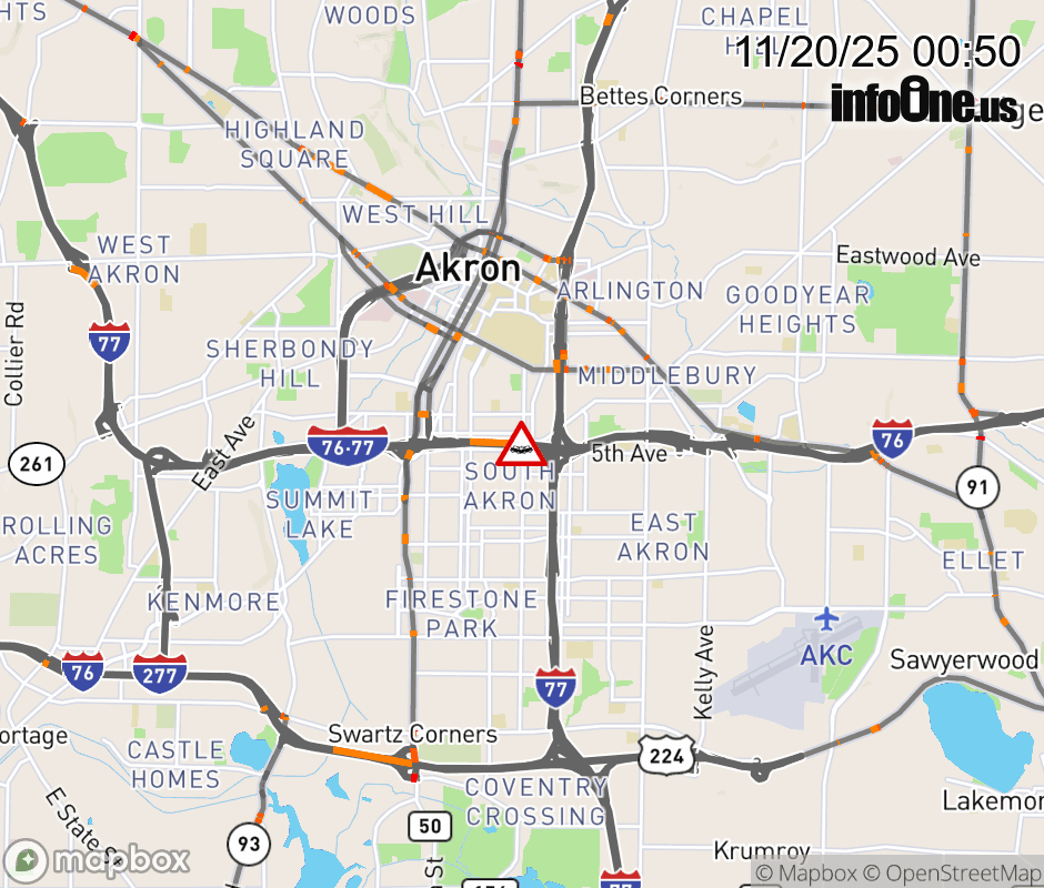 Expect lane closures on I-76 West at I-77/I-76, due to a crash. ![]() |