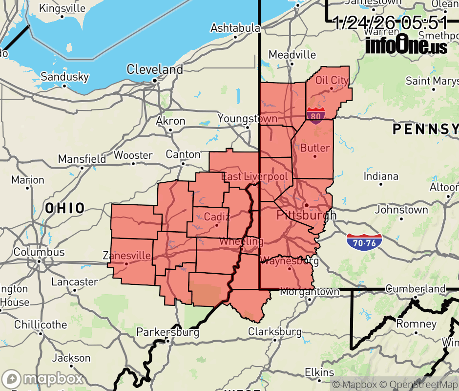 Canceled 1/24/26 10:02 AM Winter Storm Warning issued January 24 at 5:49AM EST until January 26 at 12:00PM EST by NWS Pittsburgh PA * WHAT... Heavy snow expected. Total snow accumulations between 10 and 14 inches. * WHERE... Portions of east central Ohio, northwest, southwest, and western Pennsylvania, and northern and the northern panhandle of West Virginia. * WHEN... From 7 PM this evening to noon EST Monday. * IMPACTS... Persons should consider delaying all travel. Motorists should use extreme caution if travel is absolutely necessary. ![]() |