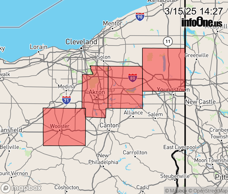 Canceled 3/15/25 6:42 PM Wind Advisory issued March 15 at 2:25PM EDT until March 15 at 8:00PM EDT by NWS Cleveland OH * WHAT... South winds 15 to 25 mph with gusts up to 45 mph. * WHERE... Portage, Summit, Trumbull, and Wayne Counties. * WHEN... Until 8 PM EDT this evening. * IMPACTS... Gusty winds will blow around unsecured objects. Tree limbs could be blown down and a few power outages may result. * ADDITIONAL DETAILS... Strong wind gusts are also possible tonight and an extension to the wind advisory may be needed. ![]() |