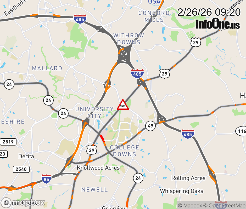 The left lane is closed at Mallard Creek Church Rd. ![]() |