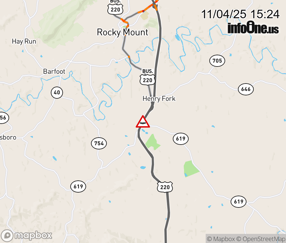 On Rt. 619 in the County of Franklin, in the vicinity of Sontag Rd; Virgil H Goode Hwy; Rt. 816N/S (Franklin County); Rt. 619E (Franklin County); US-220N; / SONTAG RD(R)/ CASSELL RD(L), motorists can expect delays due to a vehicle crash. All east lanes are closed. All west lanes are closed. Updated: Tue 11/4/25 3:24 PM EST ![]() Updated: Tue 11/4/25 3:24 PM EST |