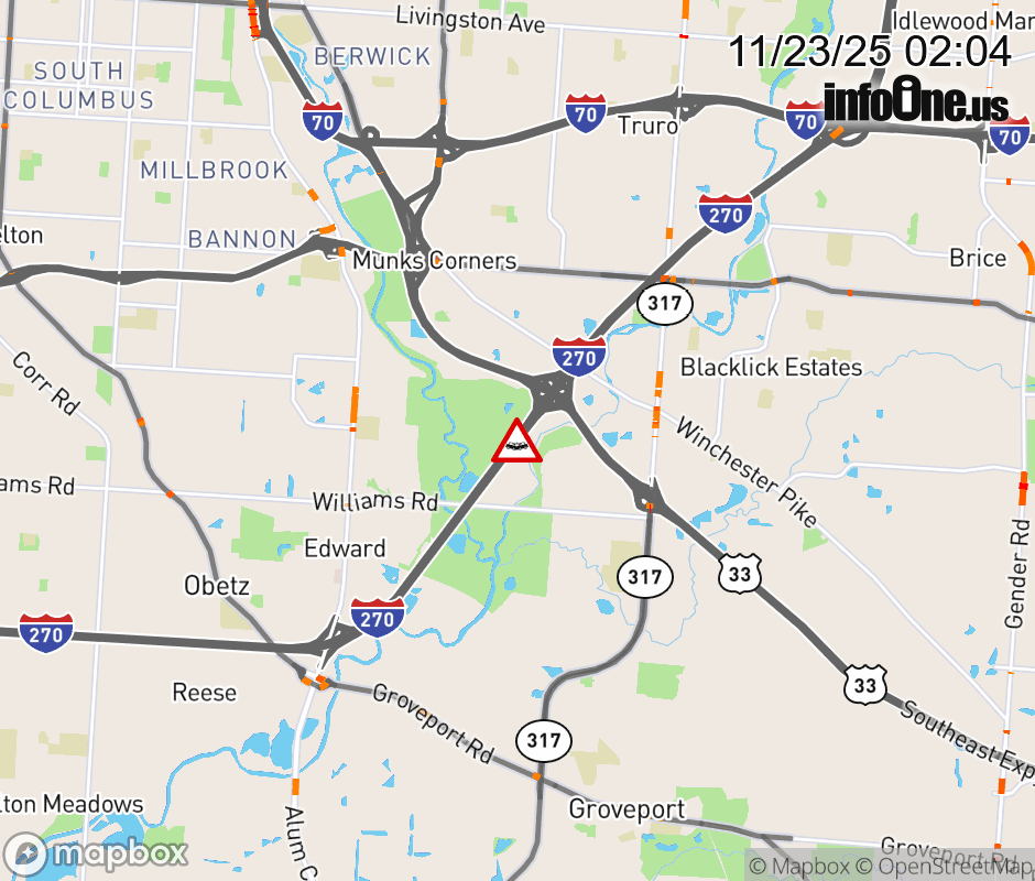 The right lane is blocked on I-270 North at US-33, due to a crash. ![]() |