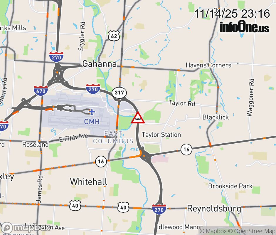 The left shoulder is blocked on I-270 South beyond SR-317/Hamilton Rd, due to a crash. ![]() |