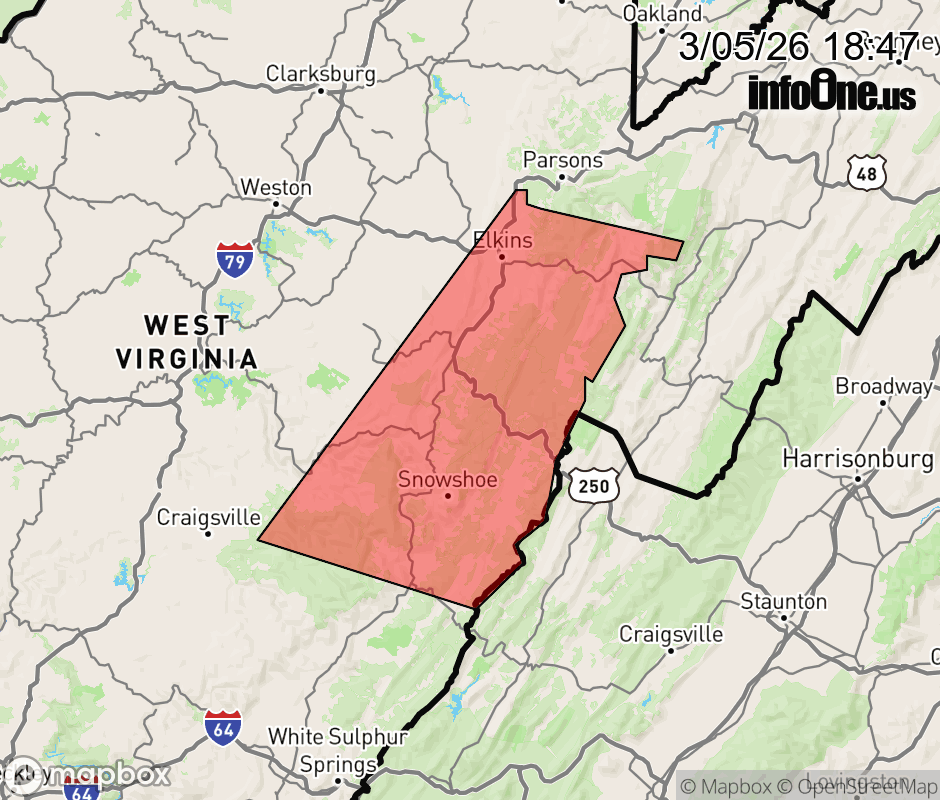 Canceled 3/5/26 7:15 PM Special Weather Statement issued March 5 at 6:46PM EST by NWS Charleston WV At 645 PM EST, Doppler radar was tracking strong thunderstorms along a line extending from 6 miles northeast of Elkins to 9 miles northeast of Richwood. Movement was east at 40 mph. HAZARD...Wind gusts up to 40 mph and pea size hail. SOURCE...Radar indicated. IMPACT...Gusty winds could knock down tree limbs and blow around unsecured objects. Minor hail damage to vegetation is possible. Locations impacted include... Elkins, Marlinton, Cass Scenic Railroad, Green Bank, Mill Creek, Snowshoe, Dailey, Mingo, Beverly, Durbin, Womelsdorf (Coalton), Huttonsville, Montrose, Harman, Pheasant Run, Arbovale, Cheat Bridge, Dryfork, Glady, and Waneta. This includes Route 33 between mile markers 31 and 35. ![]() |